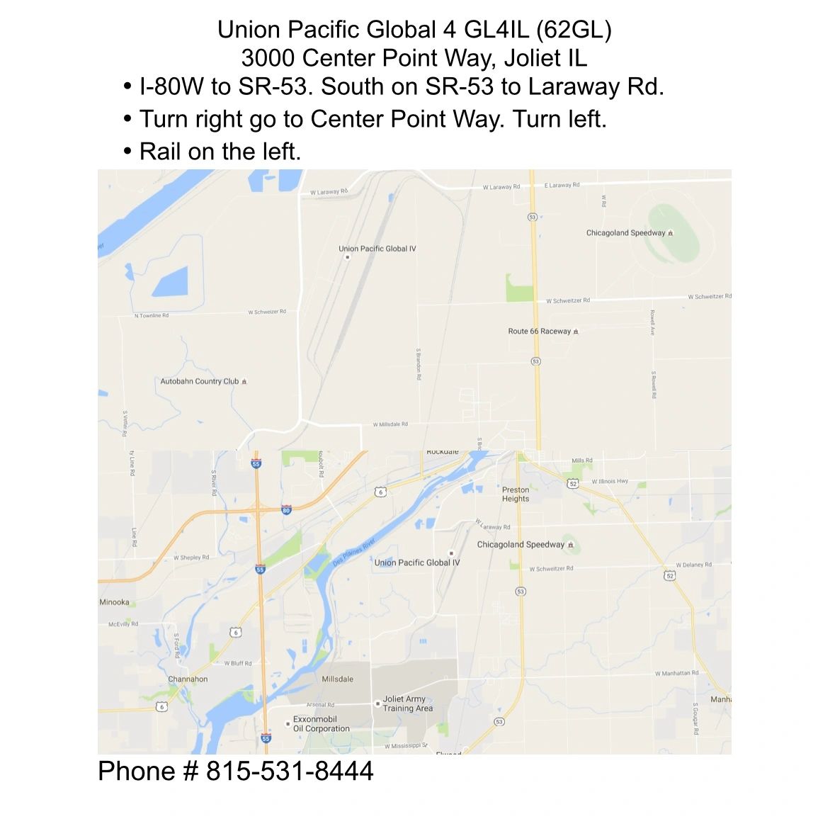 The Route from Indy to Global 4 is I-65 North to I-80 West to I-55 South. Take Exit 244 Arsenal Road. Follow Arsenal Road for 3.5 miles to S Elwood International Port Rd. Turn LEFT onto S Elwood International Port Rd follow onto Baseline Road. Turn RIGHT onto Centerpoint Way. Follow Centerpoint Way for 2.4 miles to Global 4 entrance, veer right into GL-4.